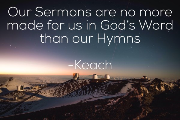 Keach strongly believed that the lyrical content of a hymn should be theologically sound. Meaning that the words being sung had to contain biblical principles, thoughts, and teachings. While Keach never claimed that his hymns were inspired as the Davidic Psalms were, he believed that they worked in instructing those who sang them and committed... Continue Reading →